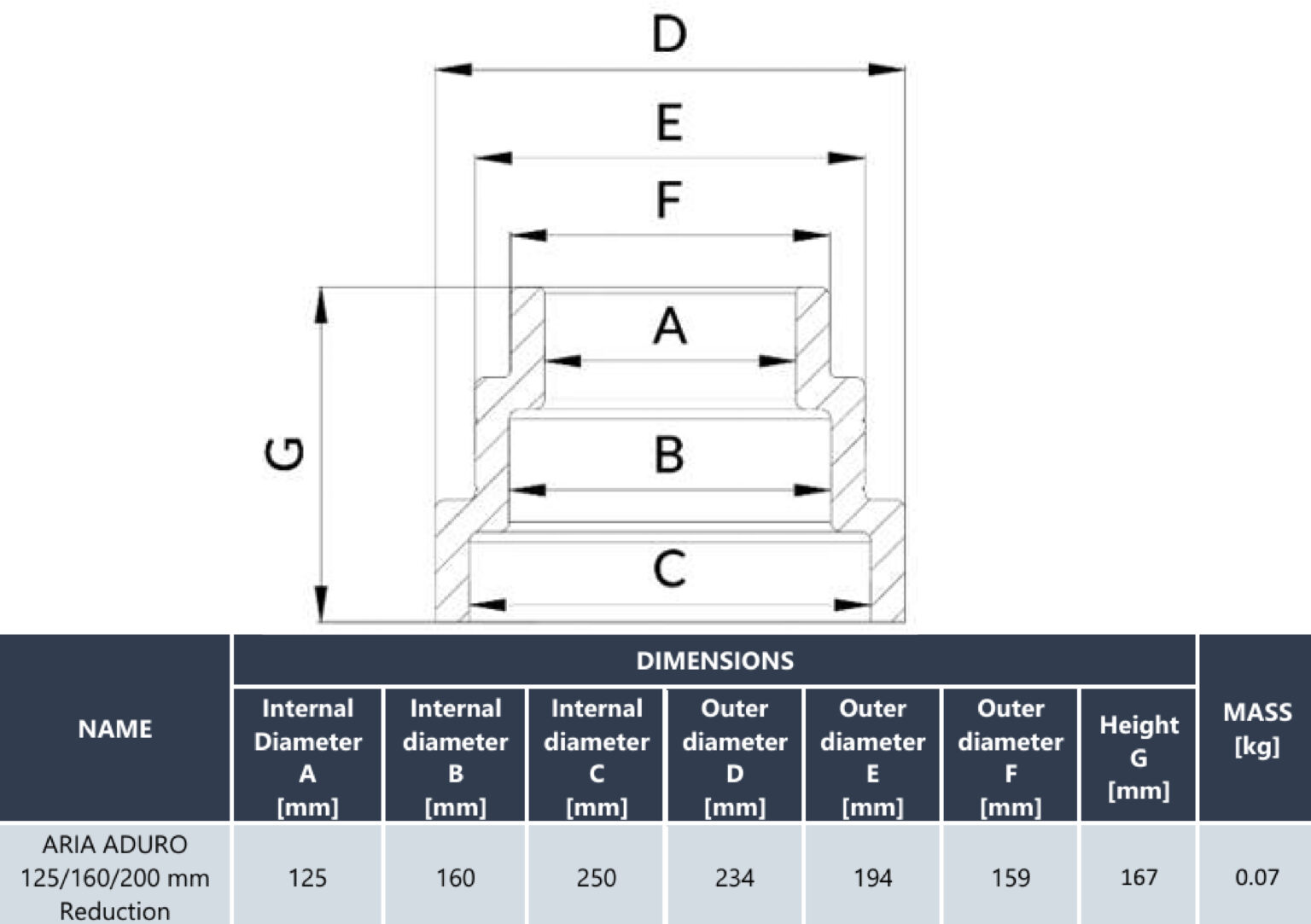 • Oferă treceri multiple: 125-160 mm, 160-200 mm sau 125-200 mm.